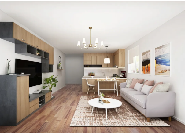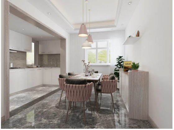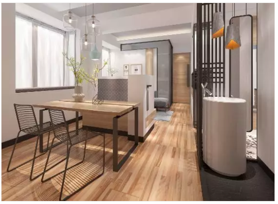 多考慮開(kāi)放式和空間交互式的布局,如客餐廳一體、開(kāi)放式廚房等,減少區(qū)域硬劃分。