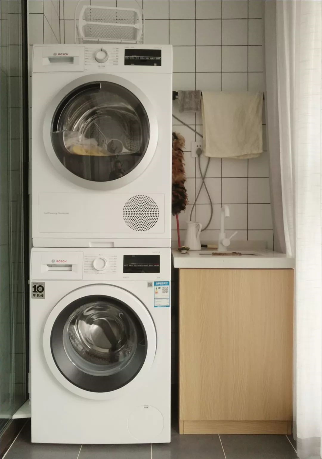 客廳外的陽(yáng)臺(tái)設(shè)計(jì)非常實(shí)用,洗手臺(tái)、洗衣機(jī)和烘干機(jī)結(jié)合,再加上陽(yáng)臺(tái)內(nèi)外都裝了紗簾,非常唯美的一個(gè)空間。