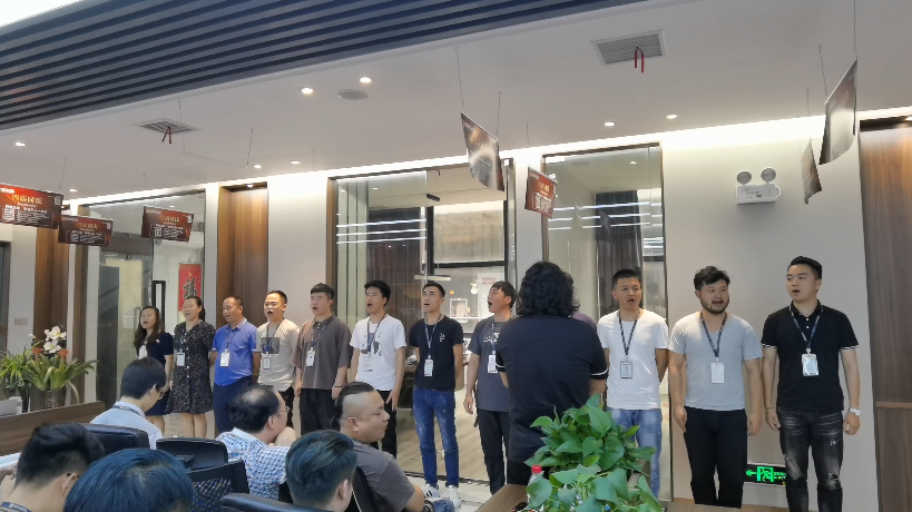 啟動(dòng)會(huì)接近尾聲,公司各隊(duì)各自確定任務(wù)目標(biāo)后,依次上臺(tái)高呼口號(hào),為自己隊(duì)伍動(dòng)員打氣,以表決心。